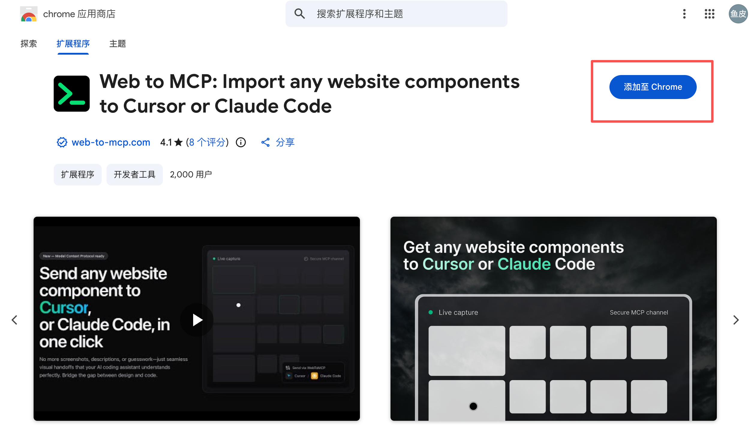 1)通过官网或者在 Chrome 应用商店搜索 Web to MCP 来安装扩展