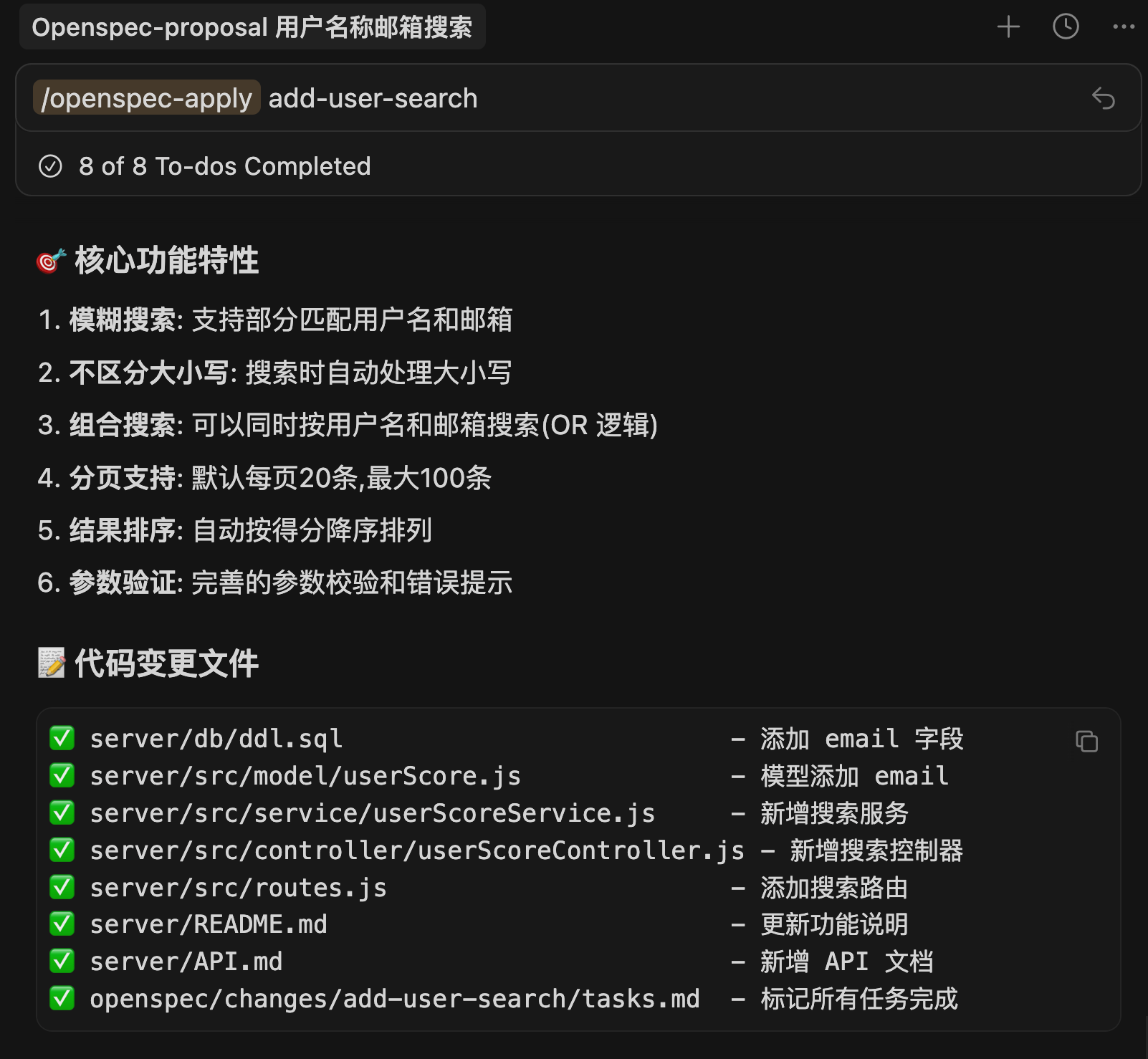这样一来,通过 openspec/changes/ 的历史记录,你可以随时追溯每次变更的来龙去脉。