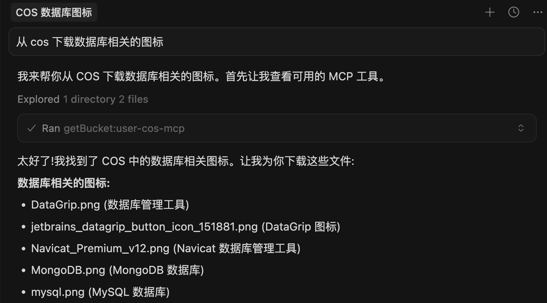 有了 COS MCP,我可以说一句话把这些需要共享的文件存到云端,然后让 AI 直接去读取。