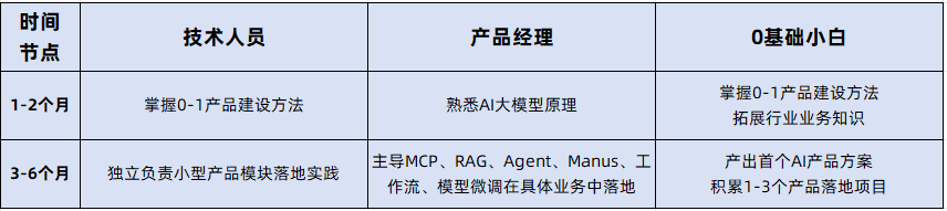 看到这里如果你还是不知道学什么?怎么学?实现转型。可以结参考转型AI产品经理成功的学员的学习路径。