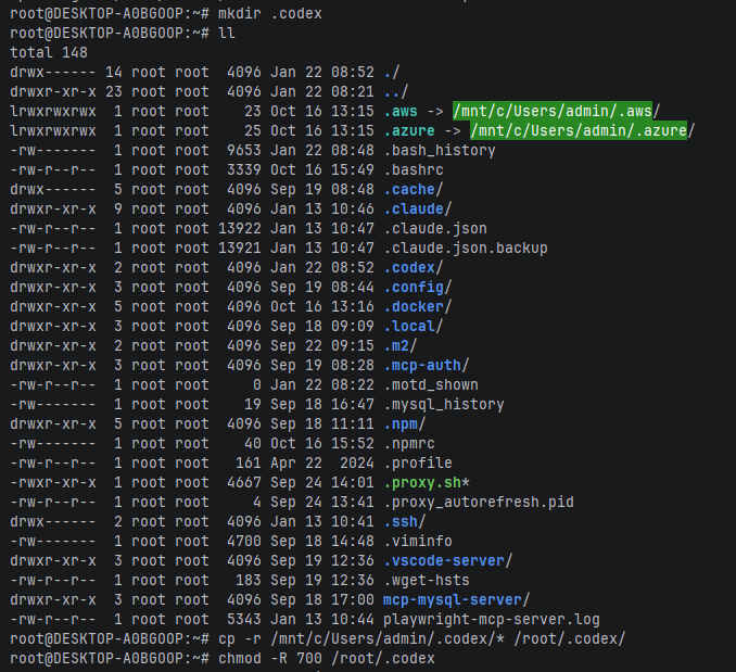 ln -s /mnt/c/Users/<你的Windows用户名>/.codex ~/.codex