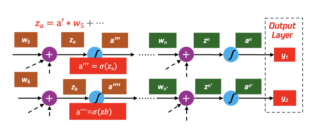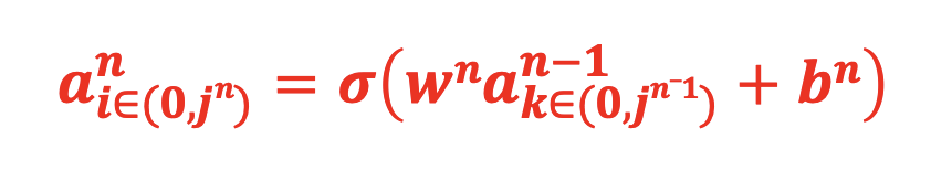 a13= σ(z13)=σ(w1,13 *a12+ w1,23 *a22+w1,33 *a32 +b13)