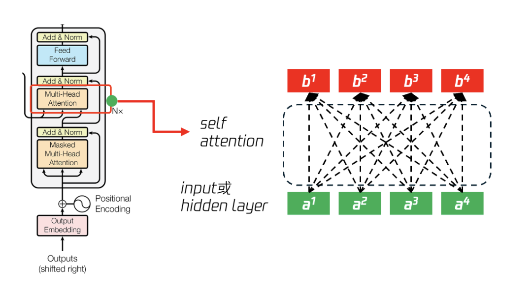 如图42所示,为Self-attention的过程,可以针对Q、K、V进行拆解: