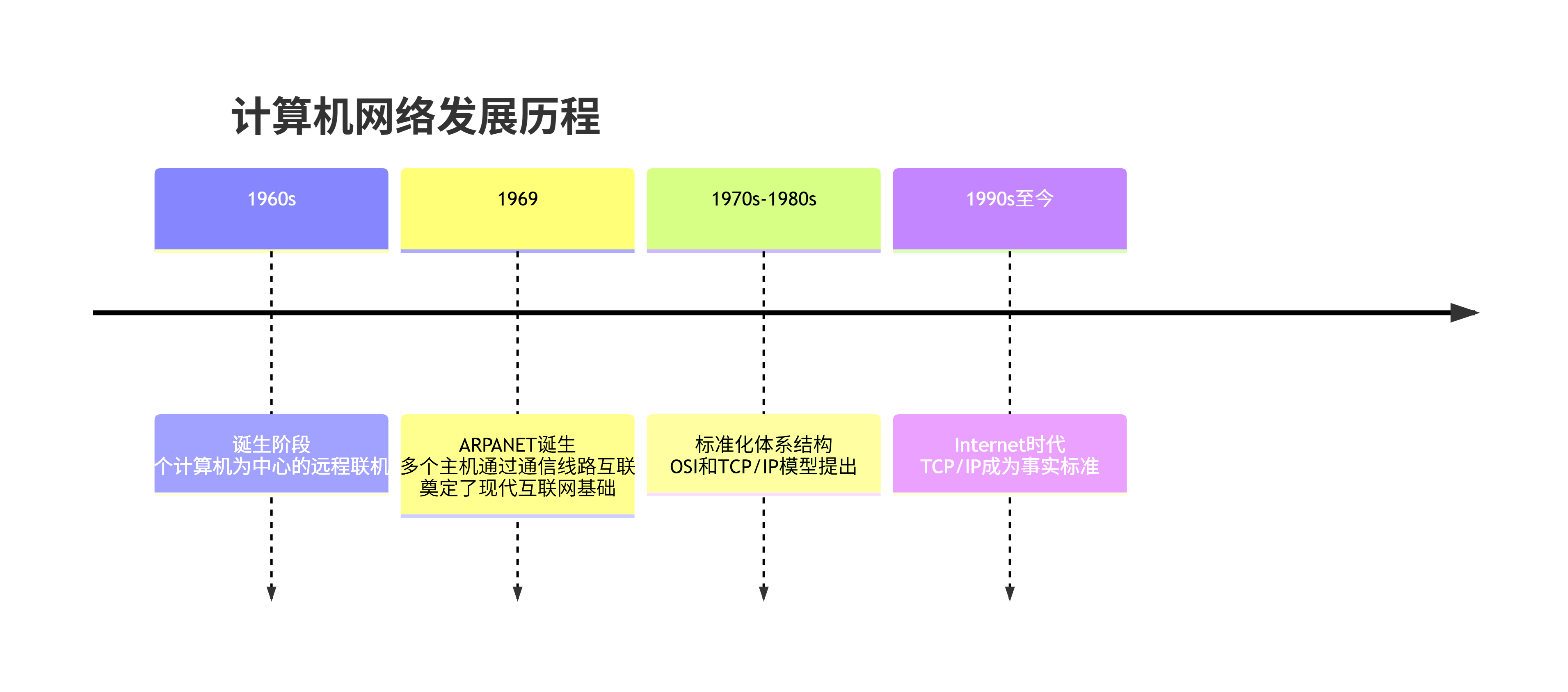 ARPANET的设计哲学:分散式指挥系统,部分节点被摧毁后其他节点仍能正常工作。这一设计思想深刻影响了TCP/IP协议的设计。