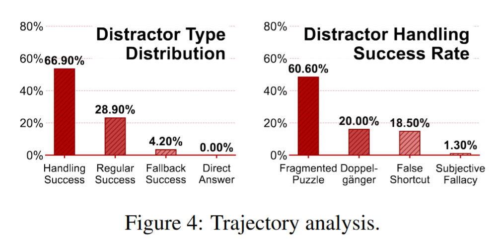 如果你正在构建RAG系统的训练数据,本文的核心启示是:不要只收集正确的推理路径,还要系统性地构造“陷阱”并记录模型如何应对。四类干扰文档(Doppelgänger、False Shortcut、Fragmented Puzzle、Subjective Fallacy)提供了一个可操作的分类框架,值得在自己的数据构建流程中借鉴。