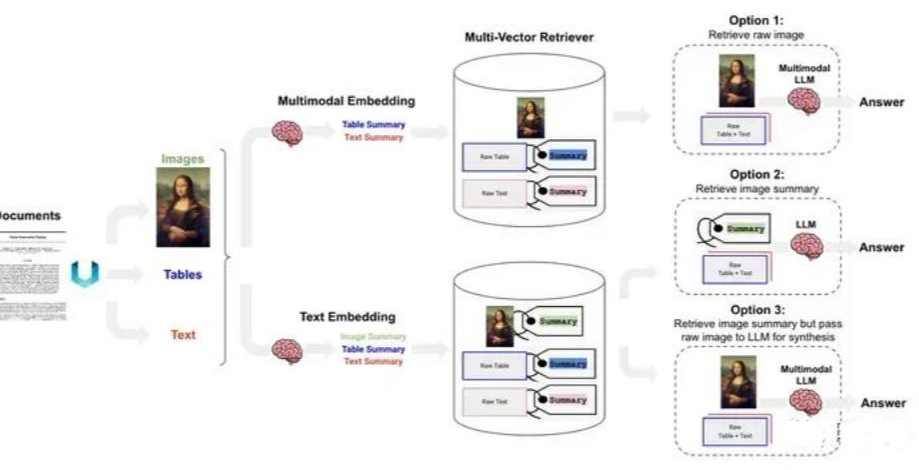 但之前作者认为的多模态RAG,就是让多模态模型去理解图片,音频或视频中的内容,并做文字总结;之后,再对总结的文字做向量化,之后通过文字向量计算的方式来查找。