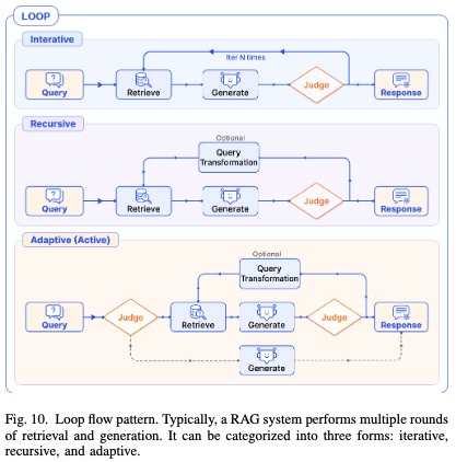 目前前沿的Agentic RAG方向,通过loop循环,提高RAG的效果。目前主要的循环模式分为三种: