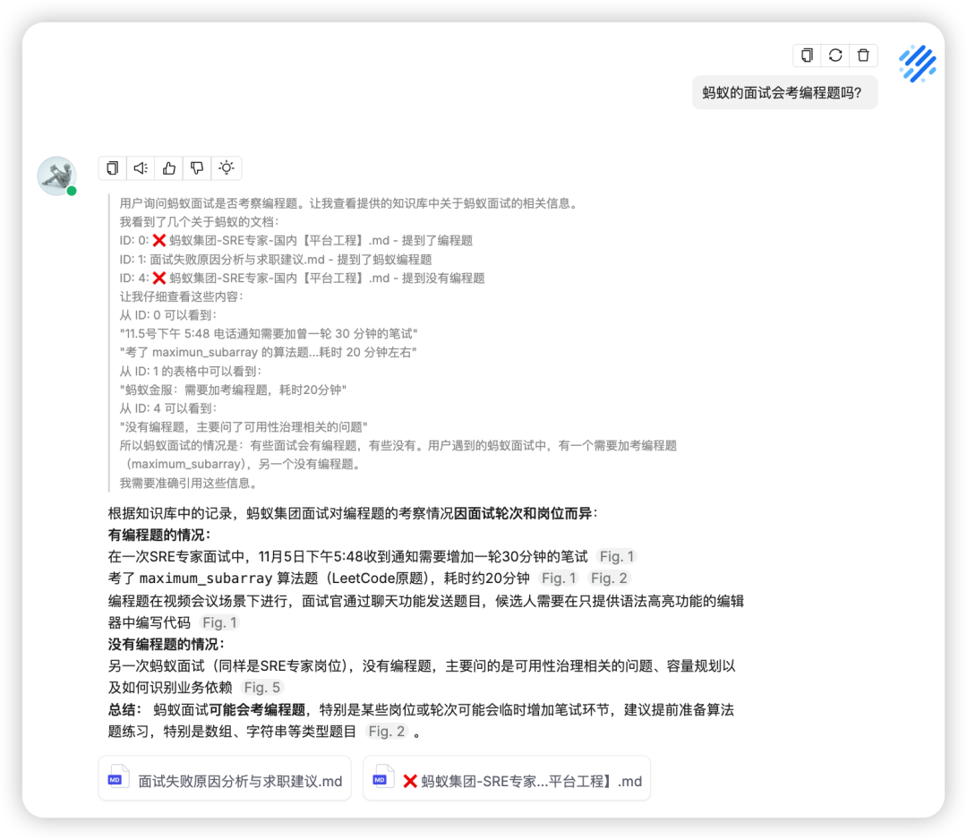 - 线上出问题时,你需要知道"是没召回到、还是召回到了但没用、还是模型瞎编"。