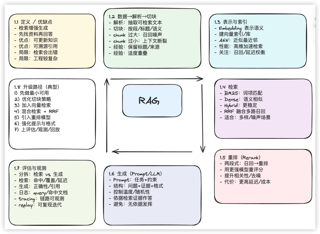我的入门建议: 如果我只有一天时间把系统从"经常答非所问"救回来,最可能有效的不是换模型,而是: (1)加 BM25/hybrid;(2)加 rerank;(3)改 chunk 让片段更自包含。