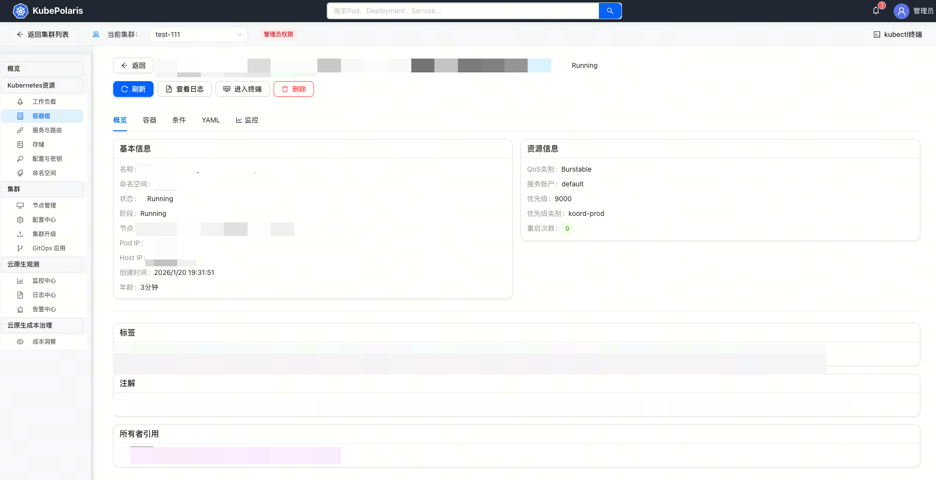 - 节点管理:Cordon、Drain、污点管理,点点鼠标即可完成。