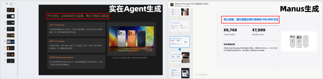 但区别在于,Manus的PPT里填的是“媒体预测价”,实在Agent的PPT里填的是“平台实时价”。