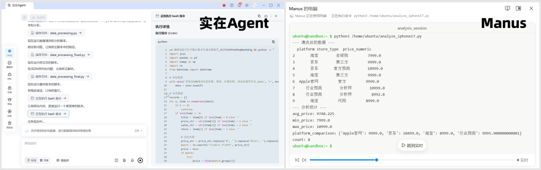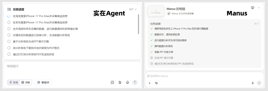 通过这次实测,我们可以清晰地看到实在Agent与Manus的定位差异: