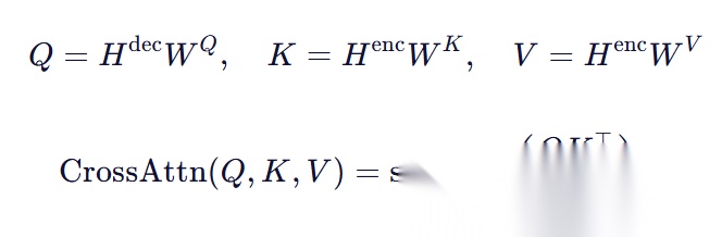 Masked Multi-Head Self-Attention的输出经过残差连接和Layer Normalization后,作为Query(Q)输入到Multi-Head Cross-Attention层,而该Cross-Attention层的Key(K)和Value(V)则来自Encoder模块的最终输出。可知Cross-Attention与Self-Attention的主要区别是:Self-Attention是Q、K、V同源的(同一序列内部交互);而Cross-Attention的Q来自Decoder,K和V来自Encoder,用于实现跨序列的信息融合。Transformer架构中每预测一个token就会经过一次decoder step(每次decoder step中,输入会依次通过所有堆叠的Decoder层),但encoder的输出在整个decoding过程中是固定不变的(即K和V不随decoder step改变),而Q在每个decoding step都会更新。