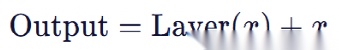 在Transformer架构示意图上可以看到,进入Multi-Head Attention前的张量X,会和经过Multi-Head Attention计算后的输出相加,这个加和操作称为残差连接。这么设计是因为在深层网络中,反向传播时梯度容易因多层导数连乘而急剧衰减(即梯度消失)。残差连接提供了一条梯度直接回传的路径,使得底层参数仍能有效更新。在本质上,此时模型学习的是输入与输出之间的“残差”(即变化量)而非完整的映射,这降低了模型优化的难度。同时原始输入信息可以通过残差连接无损地传递到后续层,避免在多层非线性变换中被过度扭曲或丢失。在Transformer中每个子层后都采用了残差连接,包括Encoder中的Multi-Head Attention和Feed-Forward Network,以及Decoder中的Masked Multi-Head Attention、Multi-Head Cross-Attention和Feed-Forward Network。残差连接的计算公式如下: