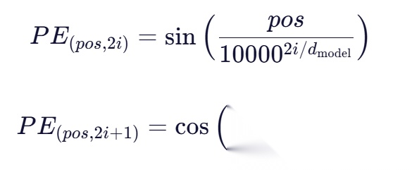 公式中的pos是指这个token在序列中的位置,如0、1、2这种取值。而i的部分(即2i、2i+1)指的是维度索引,其中0≤i< d_model/2,这里分为2i和2i+1是为了表示维度索引为偶数时使用sin计算,而维度索引为奇数时使用cos来计算。最后得到的位置编码矩阵与前面的词嵌入矩阵相加,这样每个token的向量表示就同时包含了是什么(token embedding)和在哪个位置(Positional Encoding)的信息。