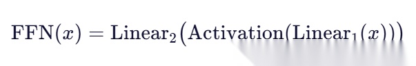 Encoder模块中除了Multi-Head Attention之外,还有一个前馈神经网络。这个网络实际上是一个包含一个隐藏层的两层全连接网络,在两个线性变换之间使用ReLU等非线性激活函数,用于进一步提升每个token中维度位置的表达能力。经过这个FFN处理后的输出将保持和输入的序列长度和维度不变。