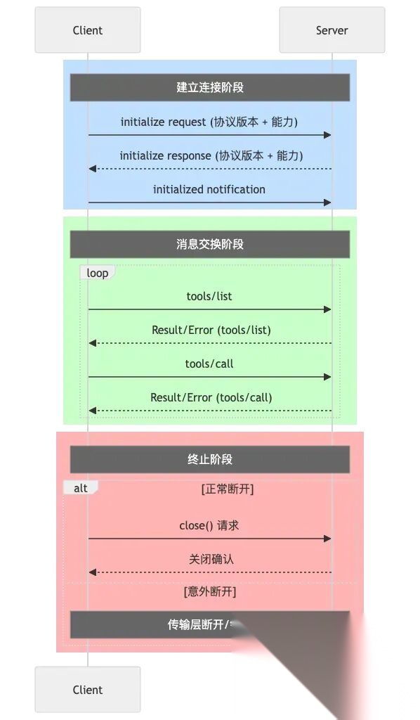 这与我们前面介绍的MCP协议的"两通道"和"四步骤"完全对应,帮助我们深入理解MCP的工作原理。
