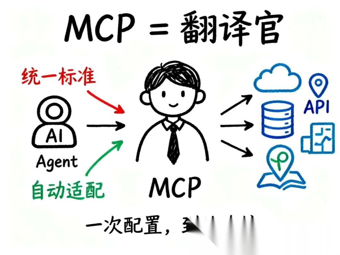 MCP就像是给AI装上了"即插即用"的接口——想让它访问什么,配置一个MCP就行。