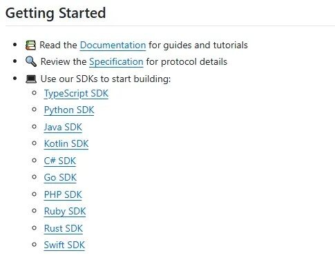 MCP提供了多种语言的sdk,大家可以根据自己的语言特长选择相应的sdk