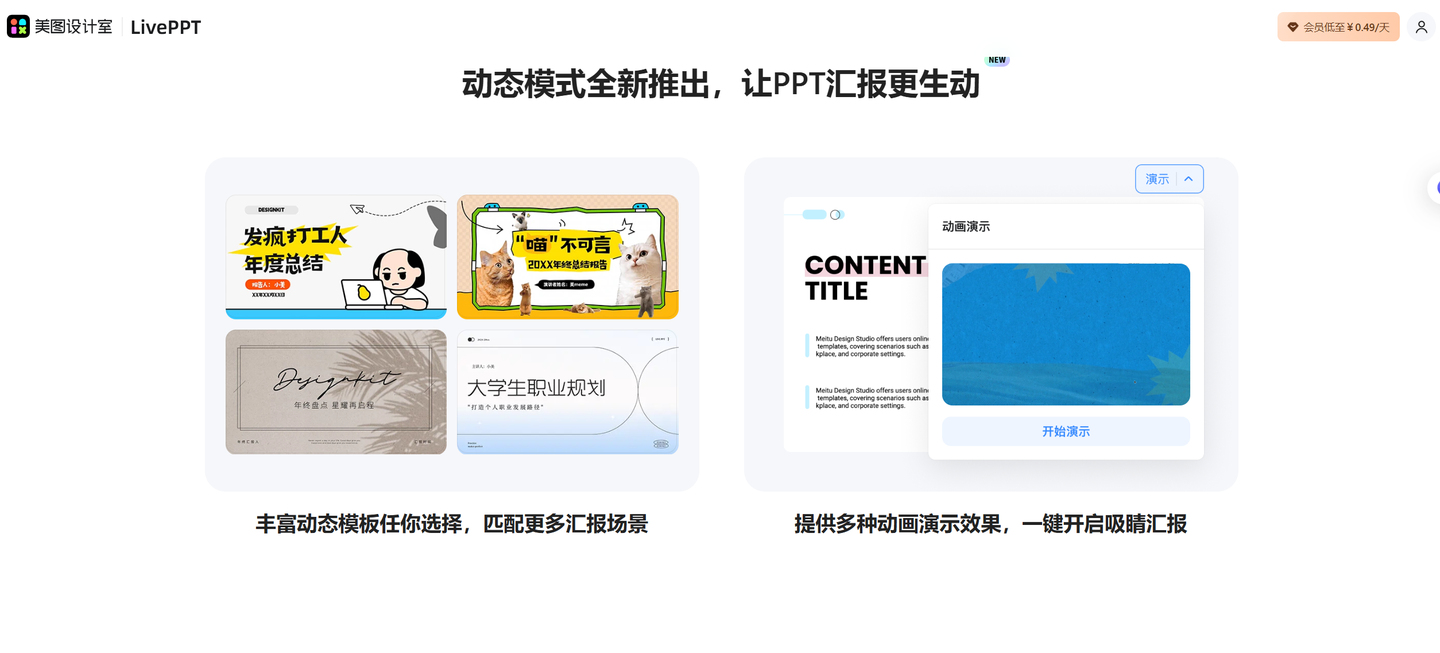 它提供免费试用,试用期内可体验部分功能,适合想快速做出高质量视觉效果年度总结PPT的用户。