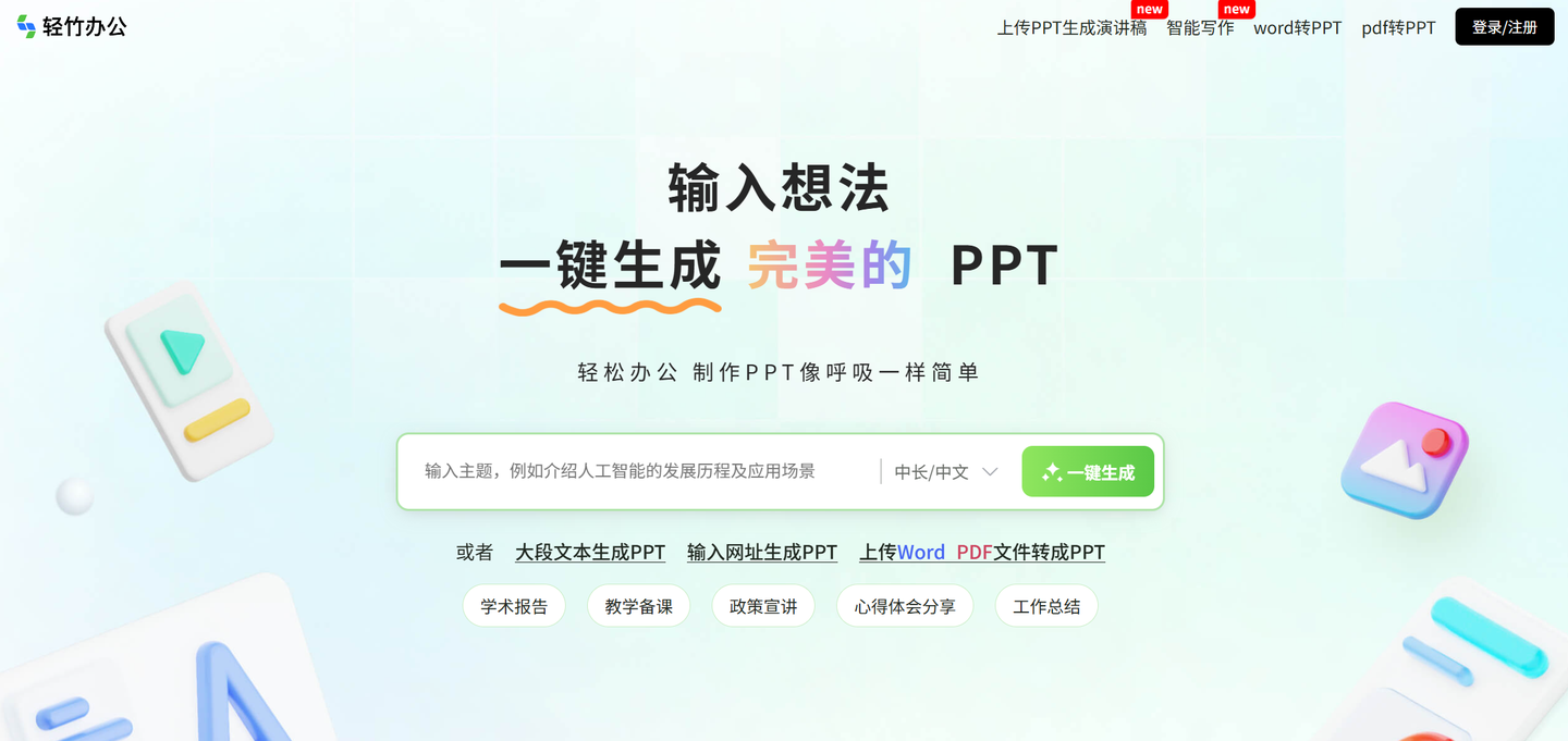 轻竹办公PPT是一款专为中文职场人打造的全链路AI办公助手,免费不限次生成的特点让它成为很多人年度总结PPT制作的首选,我身边不少同事都在使用。