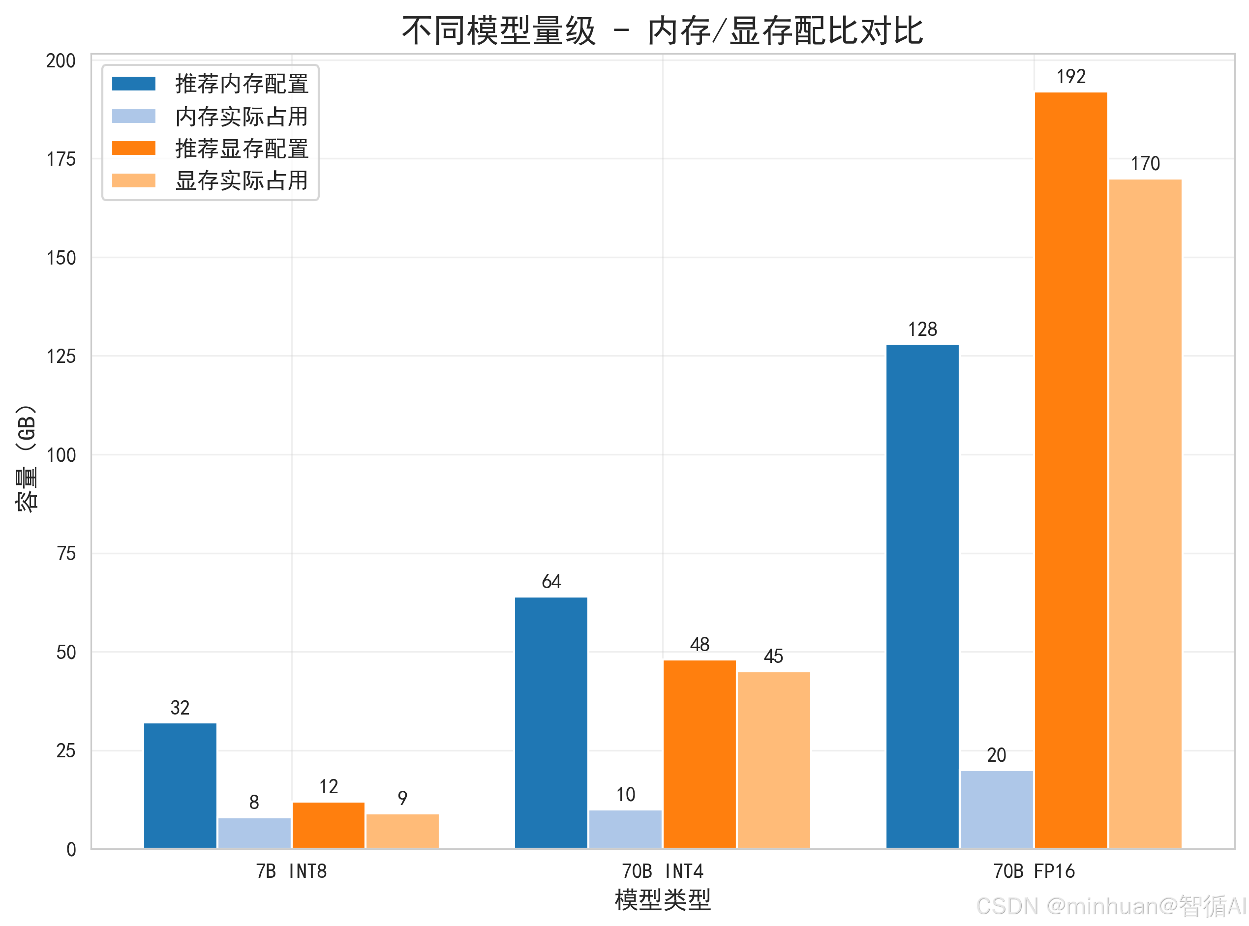 - 稳定运行后内存占用 ≈ 3–8GB(仅需维持进程、分词器、输入输出缓存等);