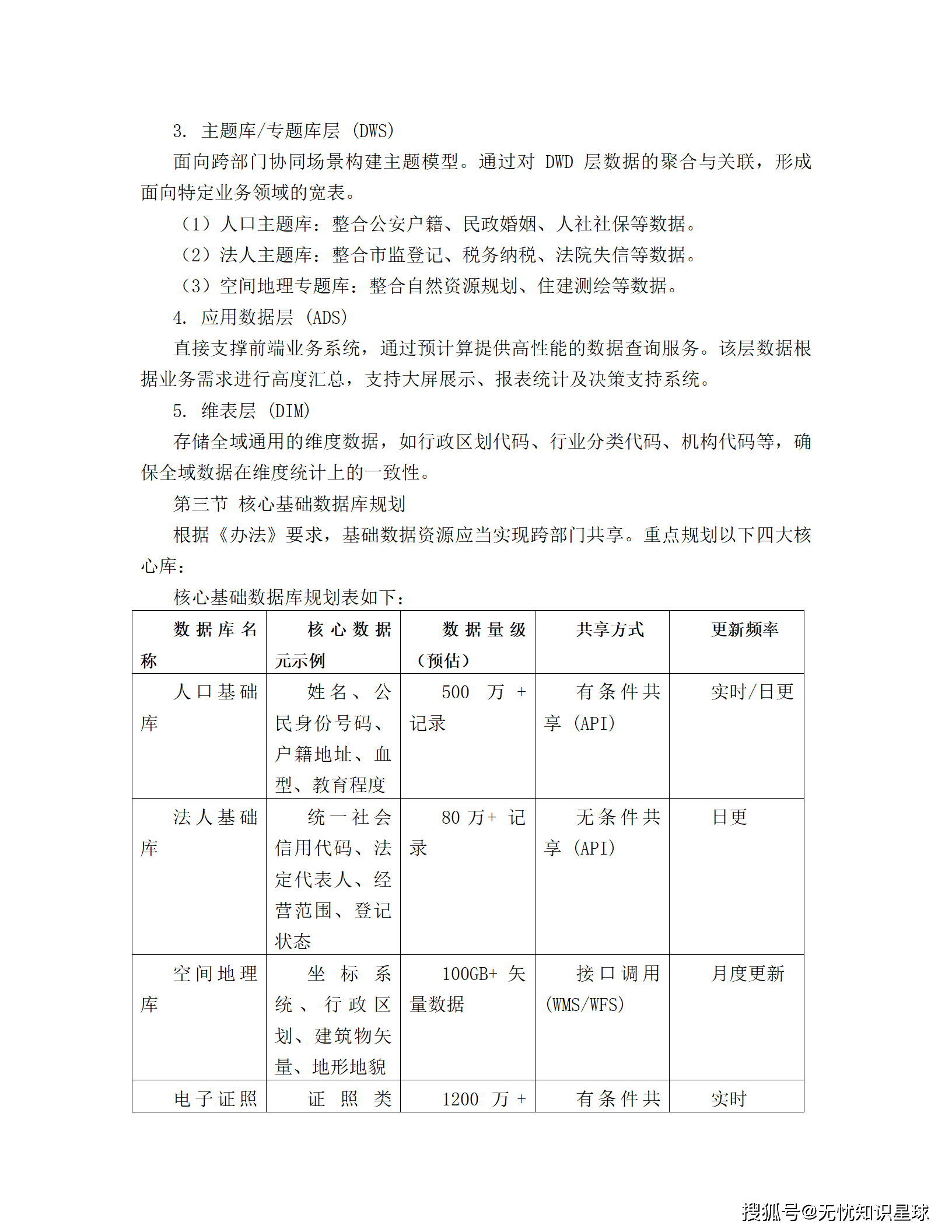 - 核心基础数据库:重点规划建设人口、法人、空间地理、电子证照四大核心库,为跨部门协同提供基础支撑。