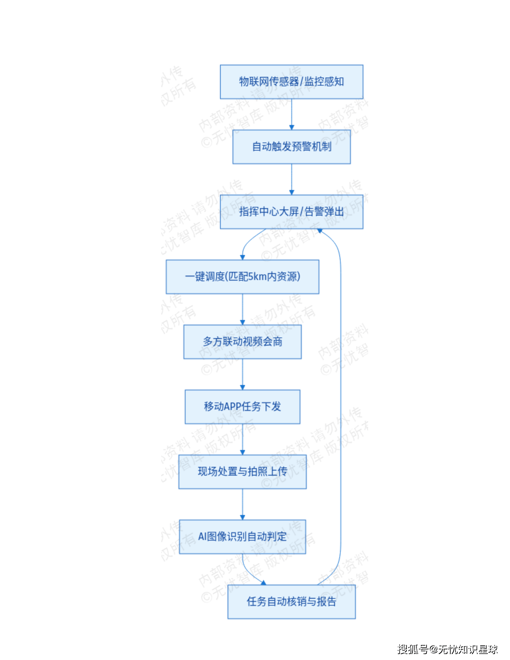 - 智能应急指挥调度:建立“监测预警、智能决策、协同指挥、复盘评估”的闭环管理体系。当发生突发事件时,系统可秒级感知、精准定位、自动弹窗,并基于知识图谱智能推荐数字预案。指挥长可“一键”将结构化任务指令下发至相关人员手持终端,实现“看得见、呼得通、调得动”。