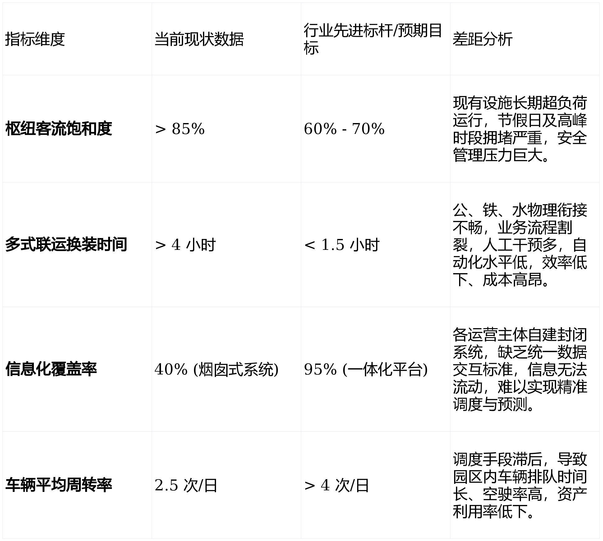 前期深入调研揭示了当前枢纽运行面临的严峻挑战,其承载力与服务能力已无法支撑未来预期的增长需求。