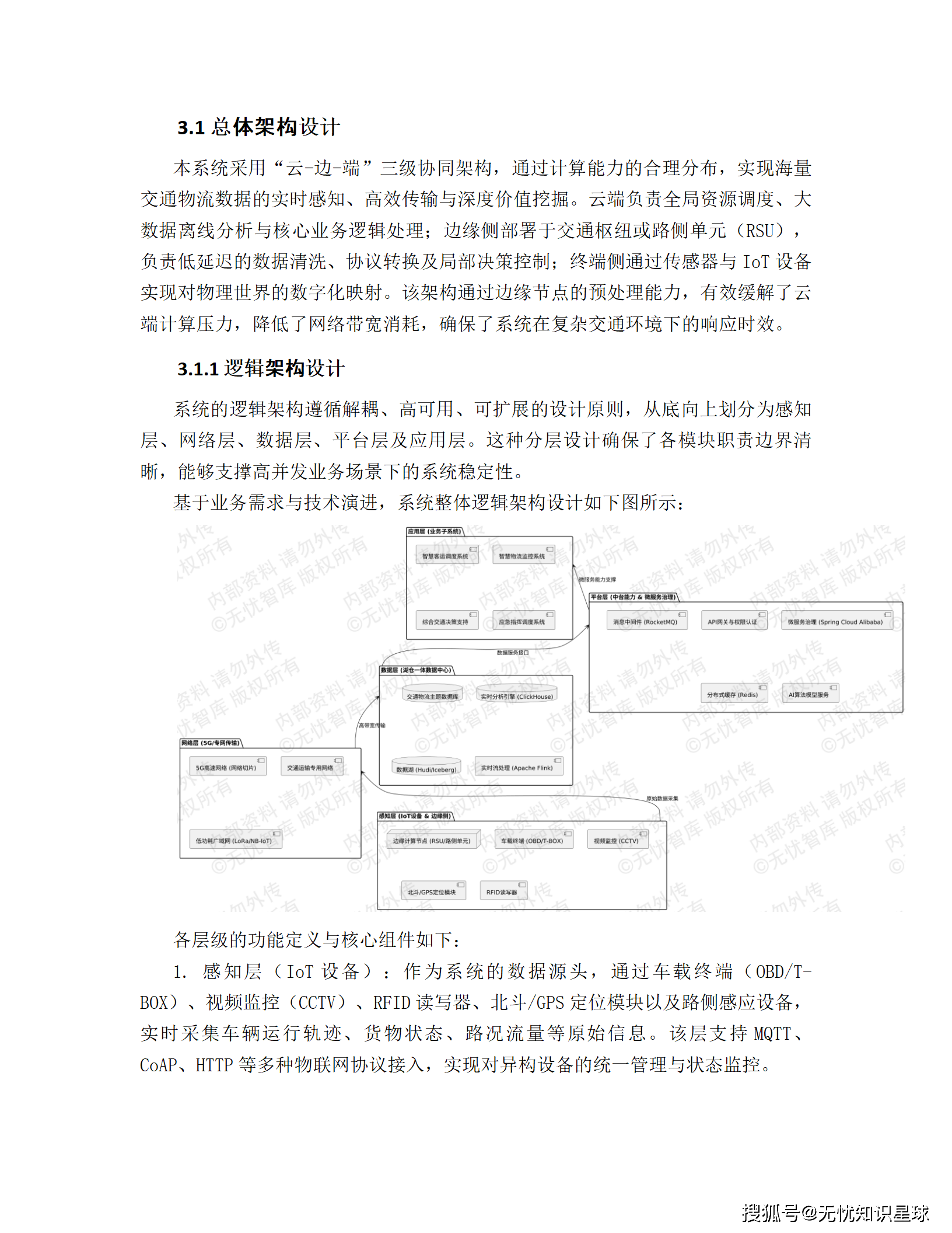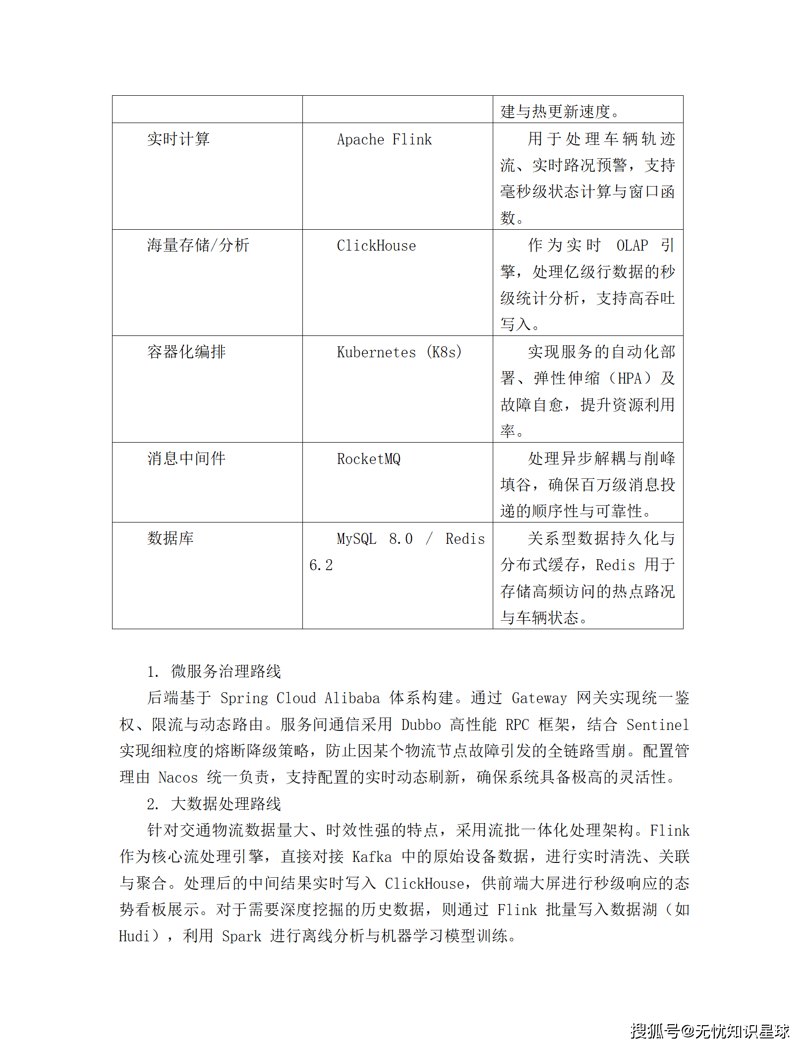 - 流批一体架构:采用“数据湖+实时计算仓”的双引擎模式。利用 Flink 流式计算框架对海量IoT传感器数据进行毫秒级处理;利用分布式存储结合 NVMe SSD 硬件加速,满足PB级交通物流大数据的存储与高频检索需求。