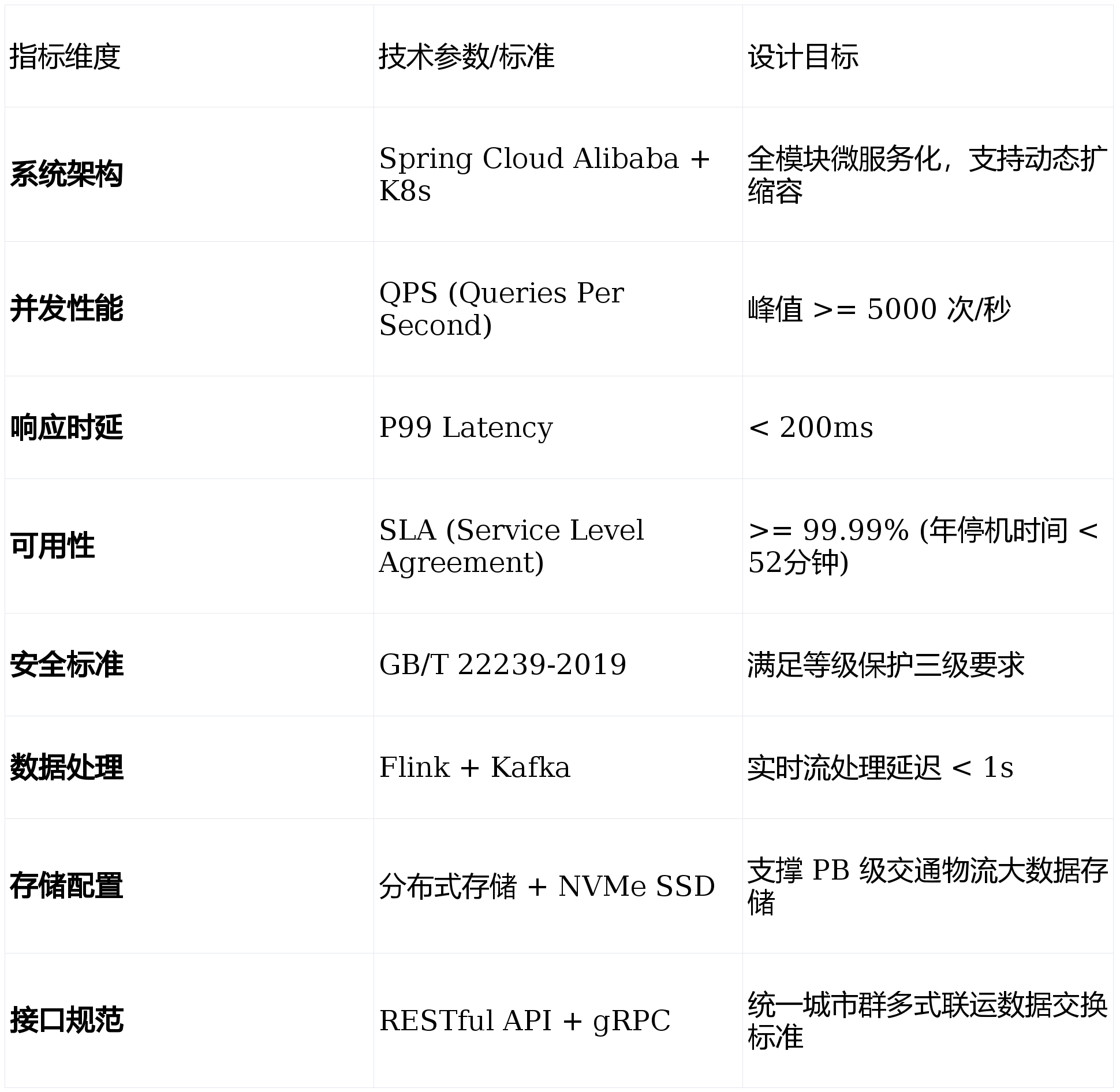 方案设定了严苛且明确的性能指标,确保系统能够满足未来业务需求。