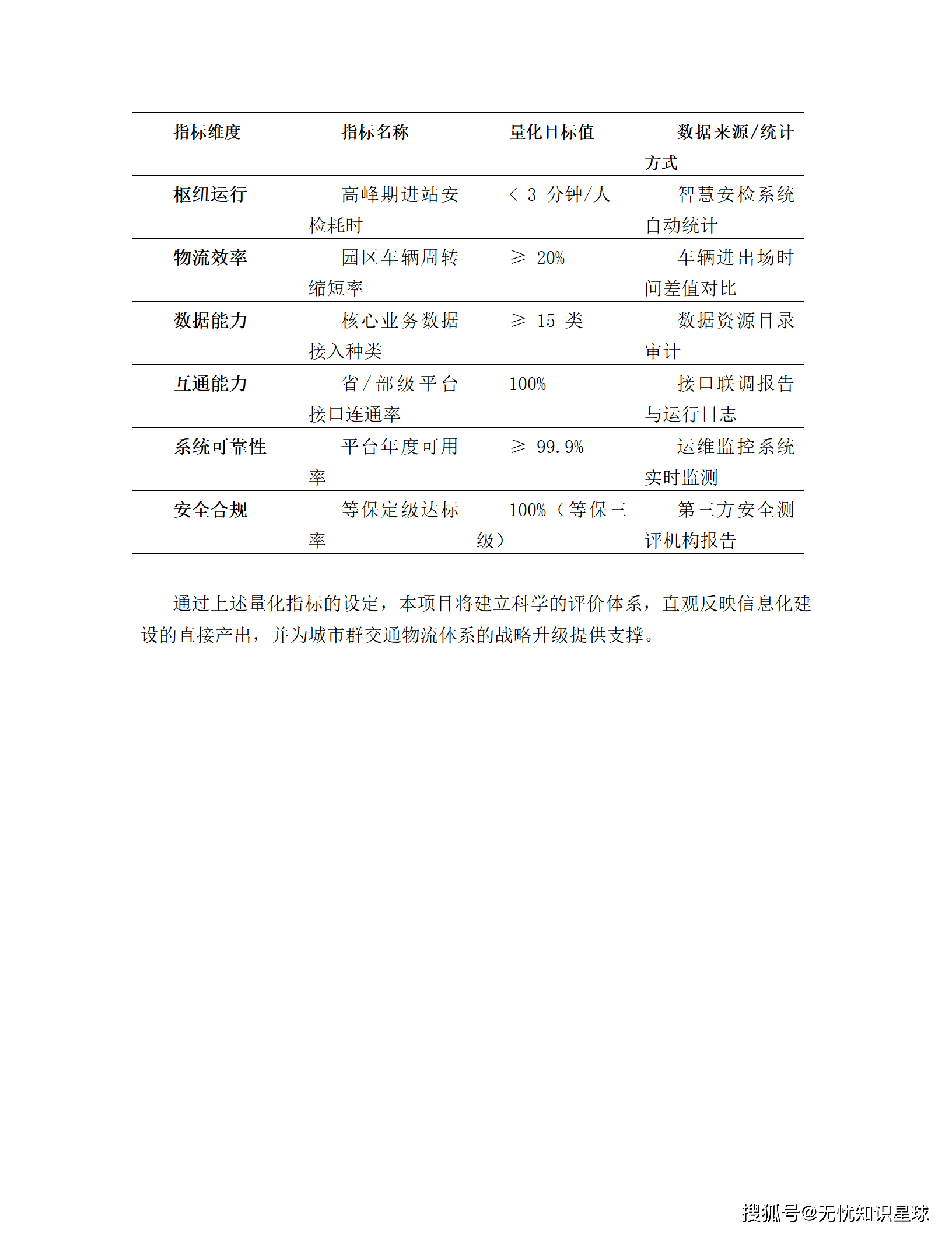 - 经济效益:通过系统集成与资源共享,预计每年可节省行政运行成本约15%,减少重复开发投入约20%。通过物流降本增效,间接带动相关产业的数字化转型收益。