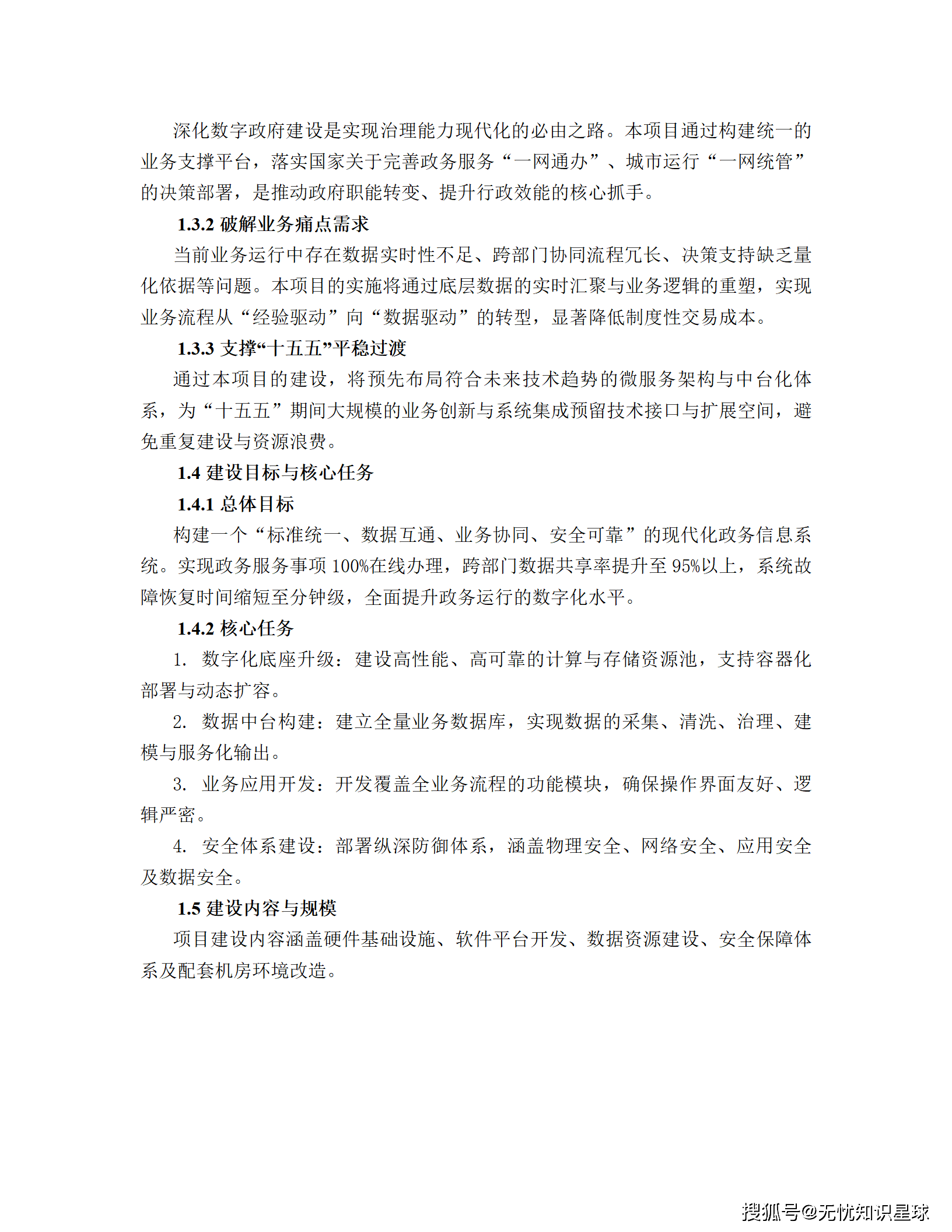 - 数字政府建设的深化集成:作为“十四五”数字化成果的集成与深化,本项目旨在解决存量系统中的“数据孤岛”与“业务断点”,并为“十五五”期间人工智能、大数据分析等新技术在政务场景中的深度应用,构建坚实的数字化底座。