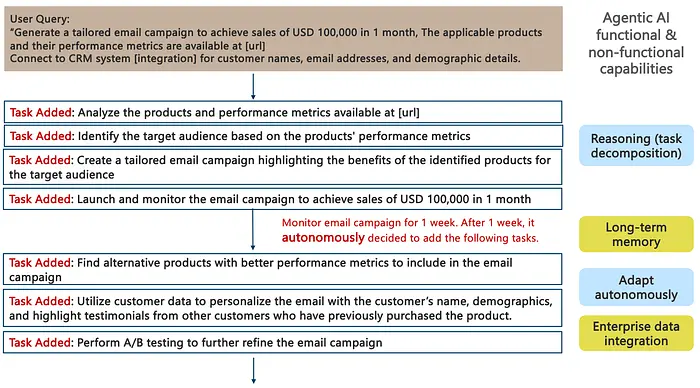 考虑到这类复杂任务的长期运行特性,内存管理成为 Agentic AI 系统的关键。一旦启动电子邮件活动,智能体需要监控活动长达 1 个月。这就需要在任务之间共享上下文,并长时间维持执行状态。