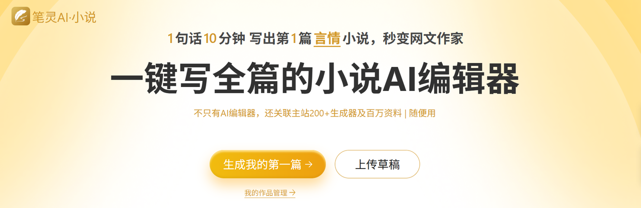 把这款工具放在第一个讲,是因为它真的太“懂”我们了。市面上很多AI是通用的,写出来的东西一股机器味,但笔灵AI明显是专门为了ai写小说调教过的。