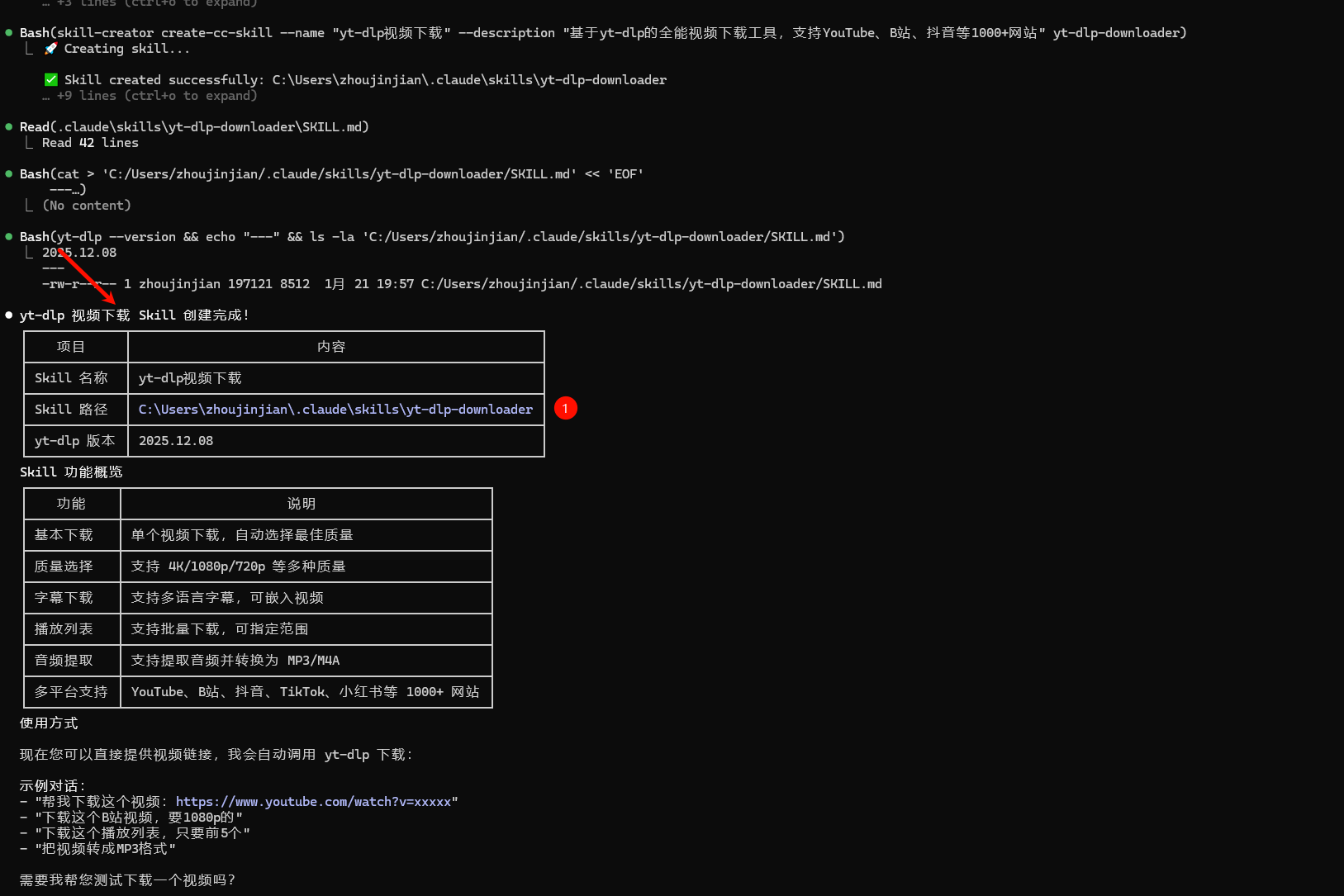 帮我把这个开源工具https://github.com/yt-dlp/yt-dlp打包成一个Skill,只要我后续给出视频链接,就可以帮我下载视频。