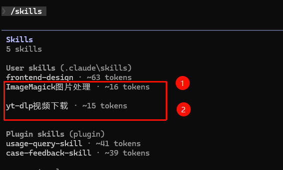 最后,我们还要在Claude Code中查看一下本地已经安装的skills