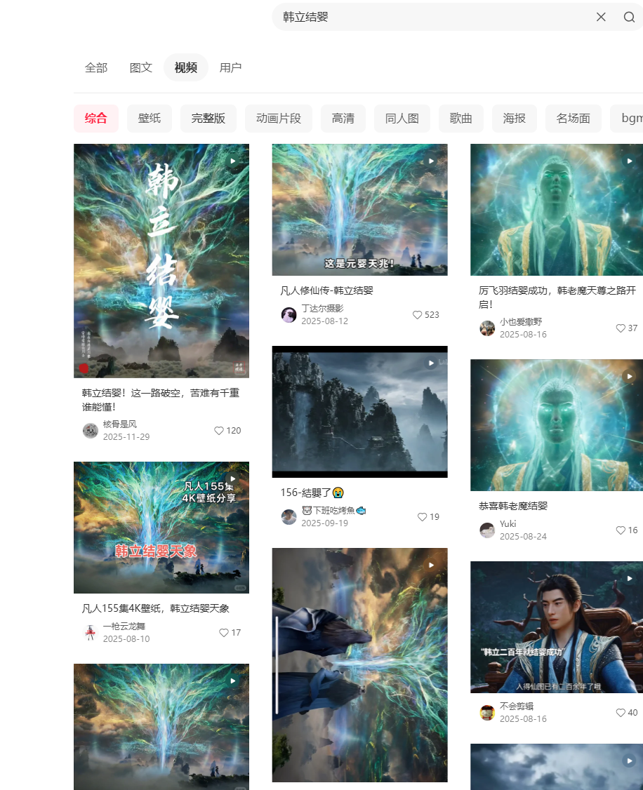 就在小红书找一个韩立结婴的视频(哈哈,各位道友应该都看过这集吧)