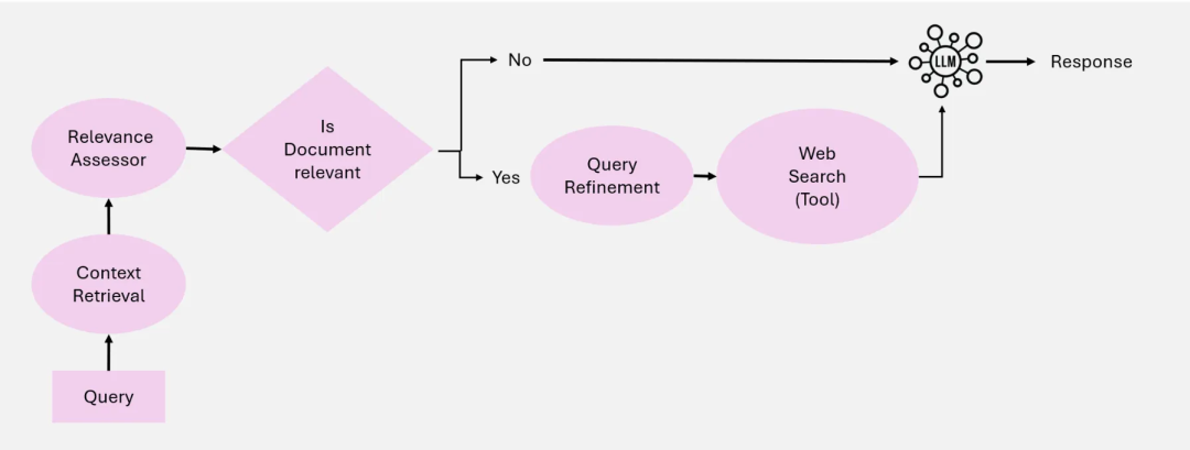 - **Relevance Evaluation Agent:**负责评估检索到的文档的相关性,并标记出不相关或不明确文档并采取纠正措施。