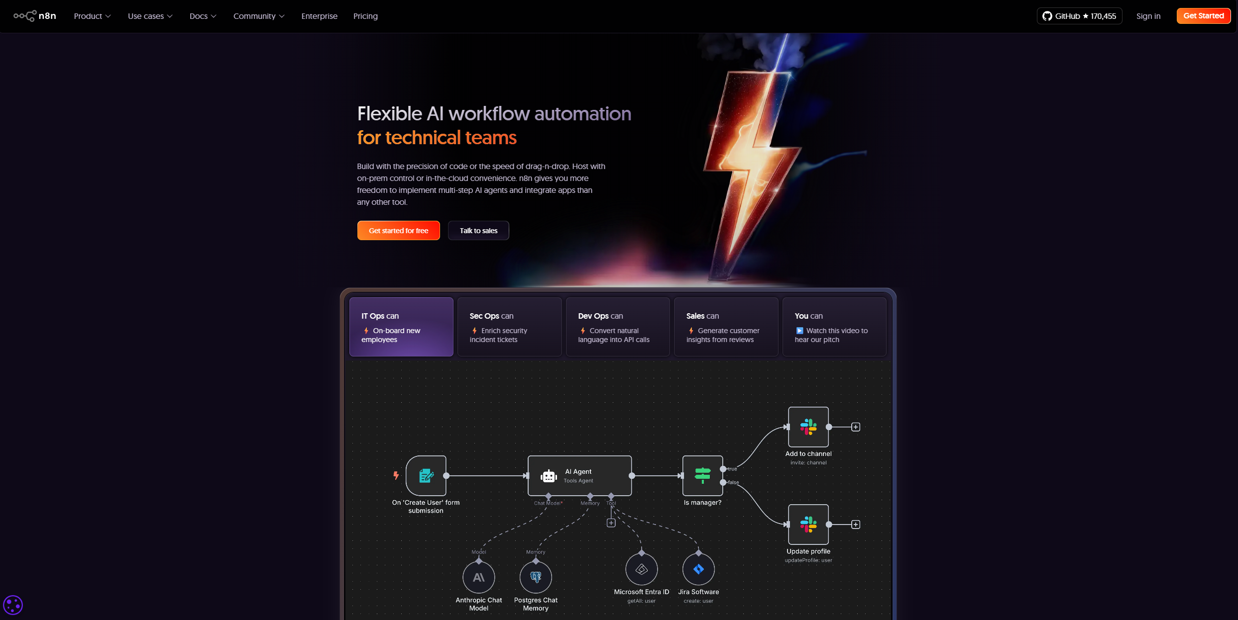 n8n 是一个开源的工作流自动化平台,它将可视化无代码界面与代码灵活性相结合,如今还集成了原生人工智能功能。拥有超过 400 项集成,n8n 使技术团队能够构建强大的自动化流程,并保持完全的控制权。值得注意的是,n8n 引入了一种“原生人工智能”方法,允许用户将大型语言模型(例如通过 LangChain)纳入其工作流程中,以创建自定义的人工智能代理自动化流程。这种构建人工智能驱动的代理和多系统流程的能力——所有都在公平代码许可下自行托管——使 n8n 大受欢迎。在 2025 年,其在 GitHub 上的星标数超过了 15 万个。