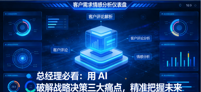 身为总经理,你是否常陷入这样的困境:市场变化太快,凭经验判断总踩空?客户需求分散,不知道该聚焦哪类群体?竞争对手动作频频,却看不清其核心意图?战略决策一旦失误,牵动的是企业全局的生死存亡。而 AI(人工智能)早已不是技术圈的 “噱头”,而是总经理手中破解决策难题、抢占市场先机的核心工具 —— 它能帮你把模糊的趋势变清晰,把零散的数据变洞察,把被动的应对变主动的布局。