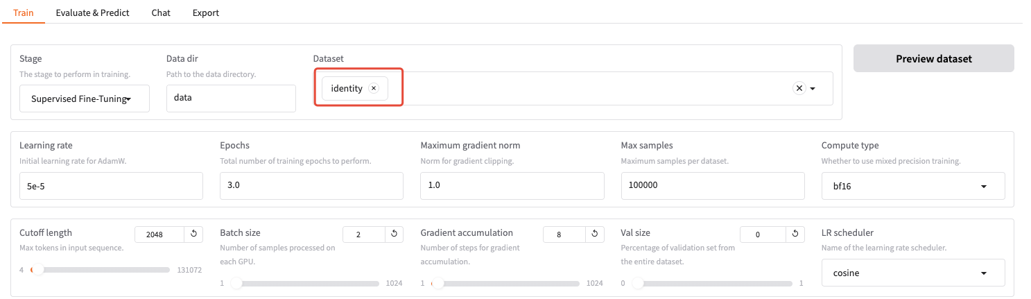 /LLaMA-Factory/data/dataset_info.json文件里添加对应的数据集