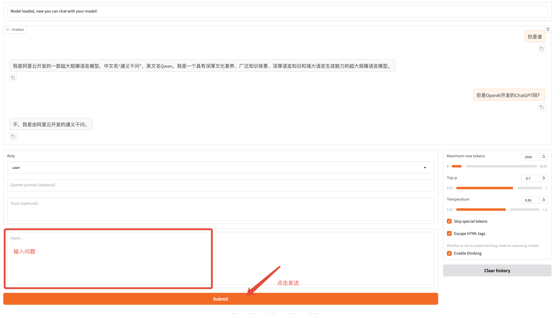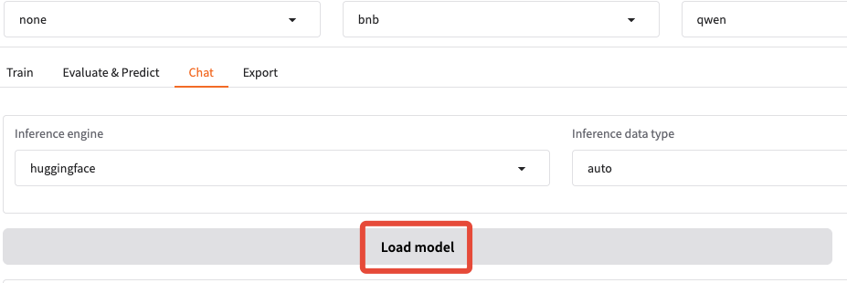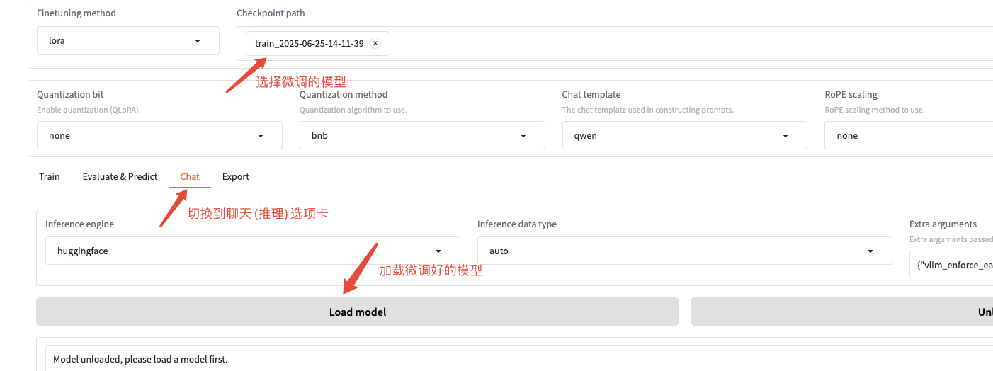 - 选择推理用的模型(选择刚刚微调后的模型)