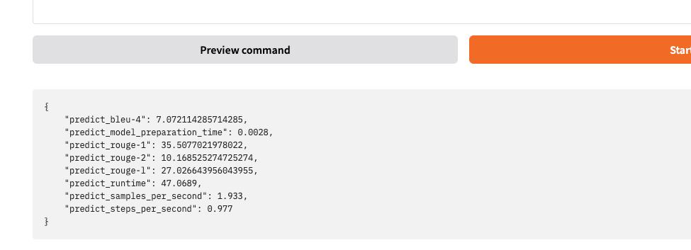 - BLEU-4: 7.0721 (衡量机器翻译质量的指标,值越高越好)