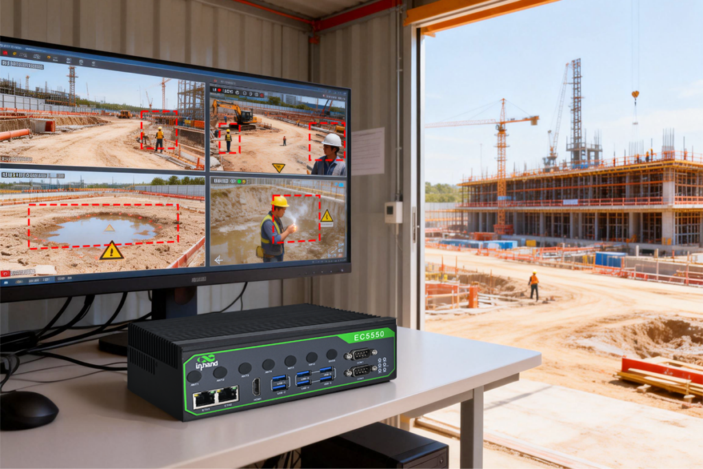映翰通推出边缘 AI 工地安全管理方案,其核心并不在于对现有监控形态的升级,而是在工地内部引入一套能够长期稳定运行的本地 AI 判断机制,其中,EC5550 边缘 AI 计算机正是这套机制的关键承载节点。