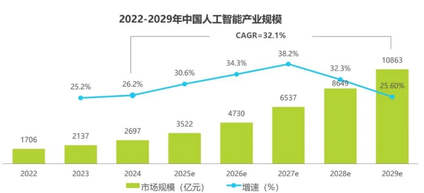 当前,生成式人工智能应用飞速发展。根据相关数据,截至2025年6月我国生成式人工智能用户规模达5.15亿人,普及率36.5%,显示出强大的市场渗透力与用户接受度。技术上,DeepSeek、通义千问等大模型实现突破,清华大学SALMONN音视频大模型在多项评测中超越GPT-4o等国际主流模型。在多重动力叠加下,中国人工智能产业正从技术跟跑向部分领跑转变,2025-2035年市场规模复合增长率预计达30.6%-47.1%。