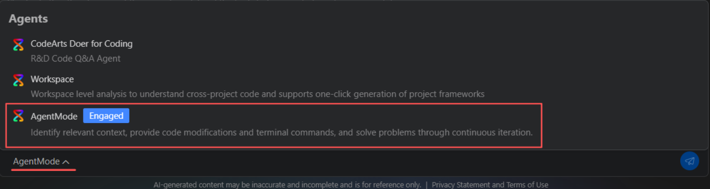 我们期望CodeArts Doer直接识别本地运行的MaaS英语情景学习助手,Agents选择AgentMode模式: