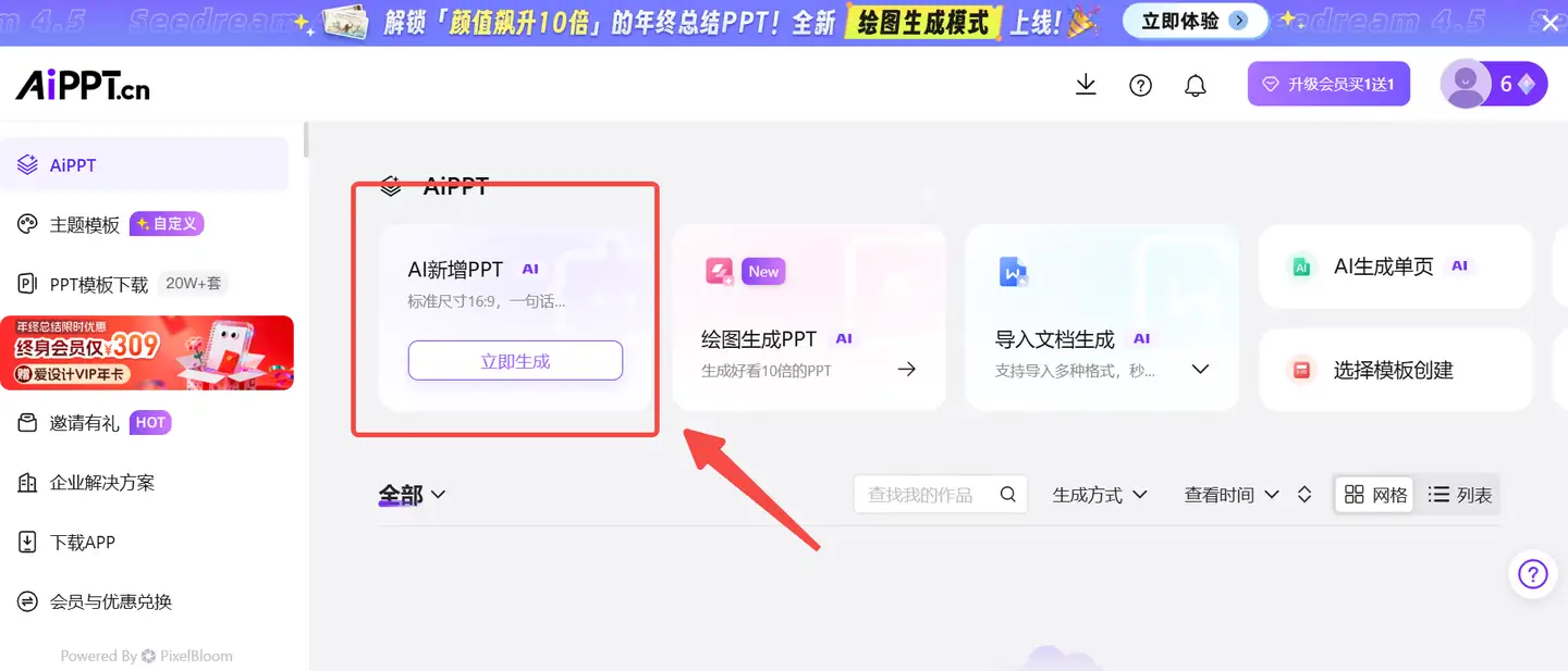 第一款要给大家介绍的PPT模板网站是AIPPT,它不仅是一个PPT模板网站,同时还是一个好用的PPT编辑工具。在AIPPT中,工作总结PPT模板下载和使用可以在站内一站式完成,无需再切换网站。并且除了传统的手动编辑PPT模板之外,AIPPT还上线了“AI生成PPT”功能,可以借助AI,几句话就完成PPT设计,生成的PPT也并不是纯文本内容,还包含数据示例,如果感觉对生成的PPT效果不太满意,还可以