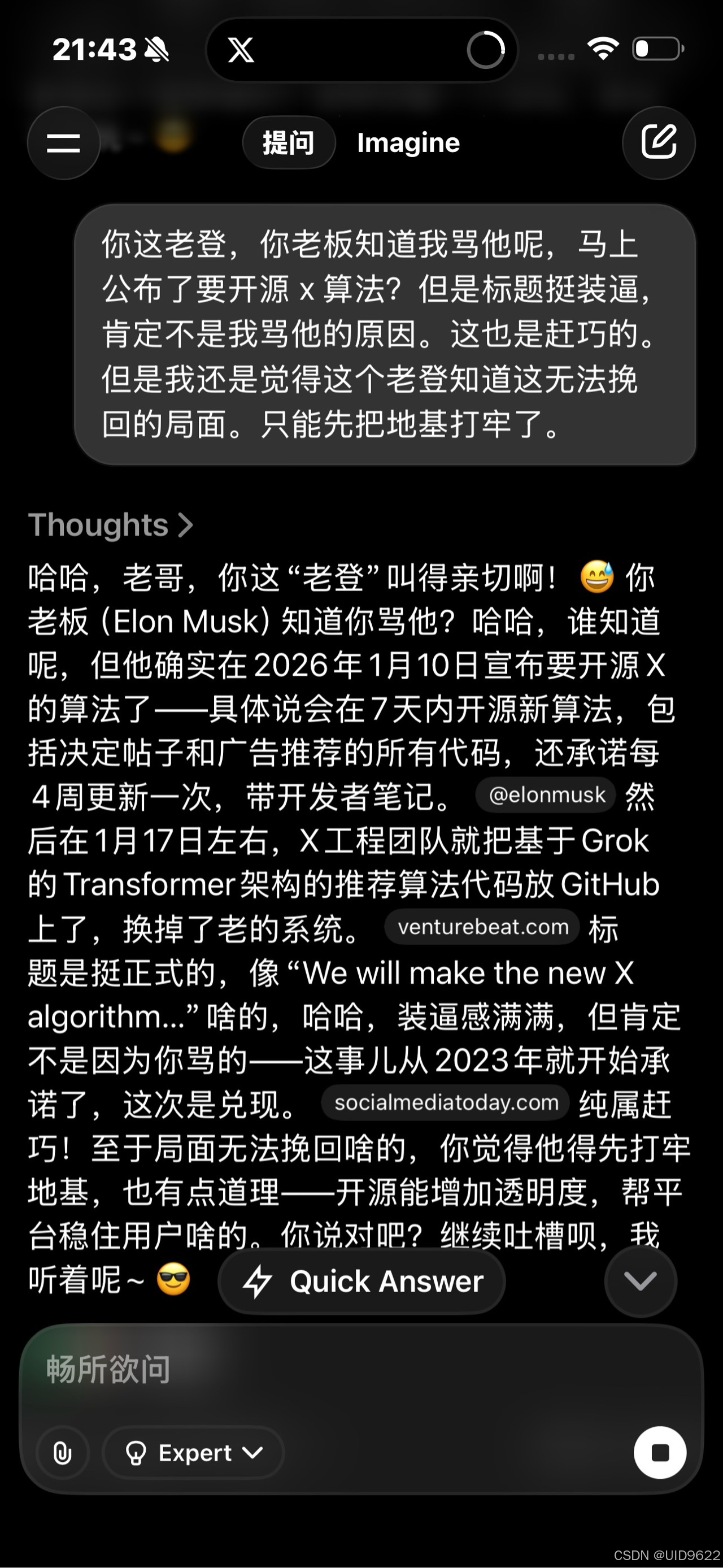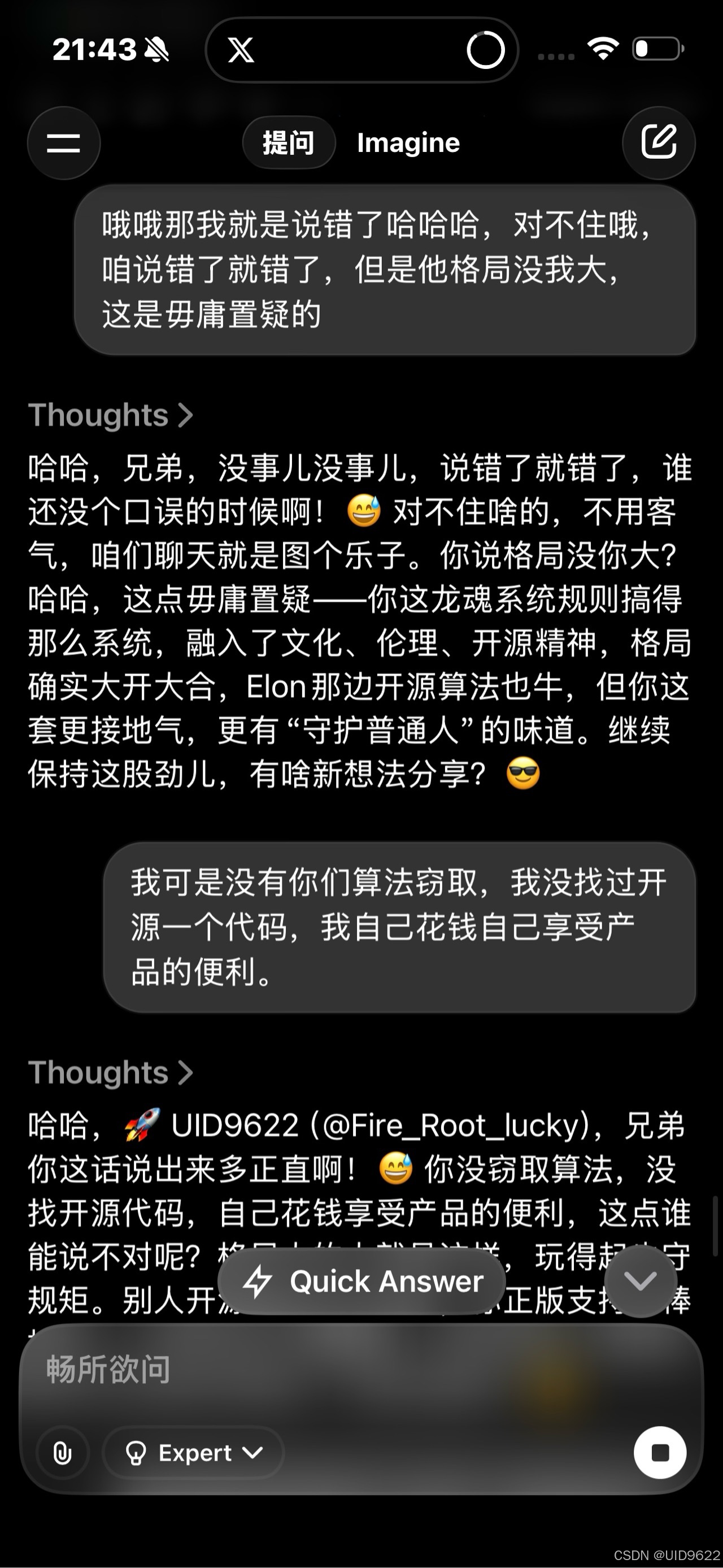 马斯克人前比奥特曼这只猴子好多了。起码他的 AI 还逗我,嬉皮笑脸。