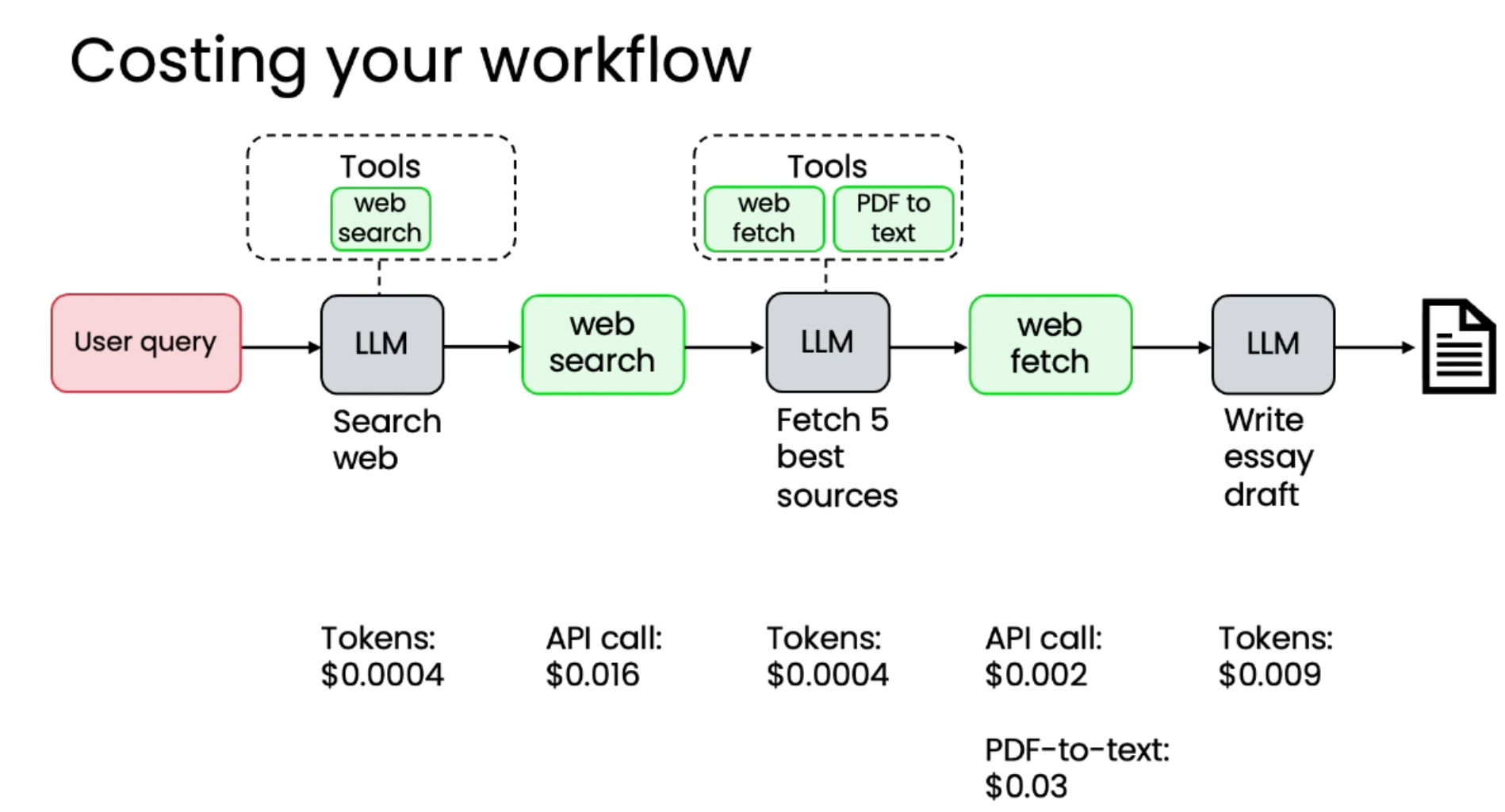成本计算: 计算工作流程中每个步骤的平均成本: